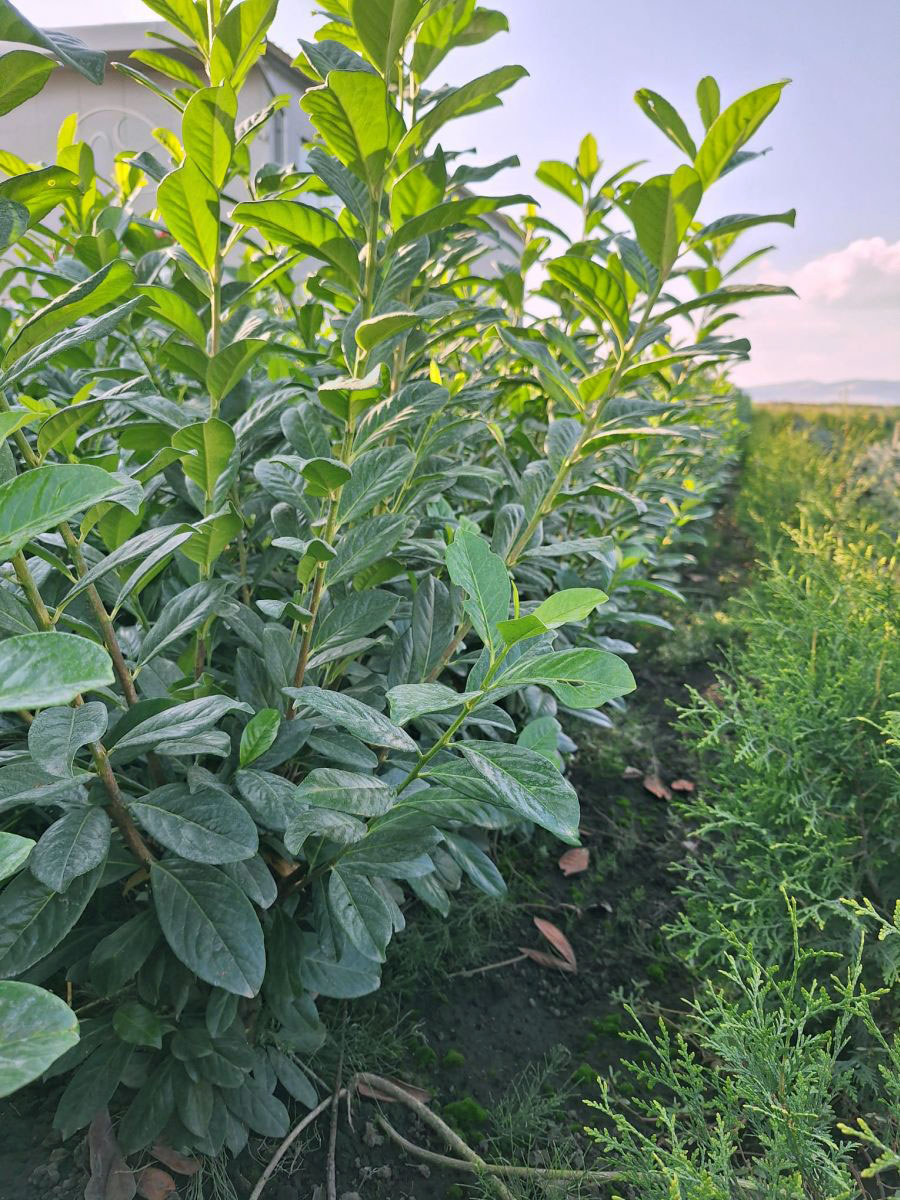 Babérmeggy (Prunus laurocerasus) egy örökzöld díszcserje, amelyet sűrű és elegáns sövény kialakítására különösen nagyra értékelnek. Fényes, sötétzöld levelei egész évben díszítik a kertet, és természetes intimitást biztosítanak. Jól fejlődik napos és félárnyékos helyeken, fagytűrő, és könnyen alkalmazkodik a különböző talajtípusokhoz. Ideális választás kertekbe és zöldterületekre, ahol fontos a szél, a por és a zaj elleni védelem.